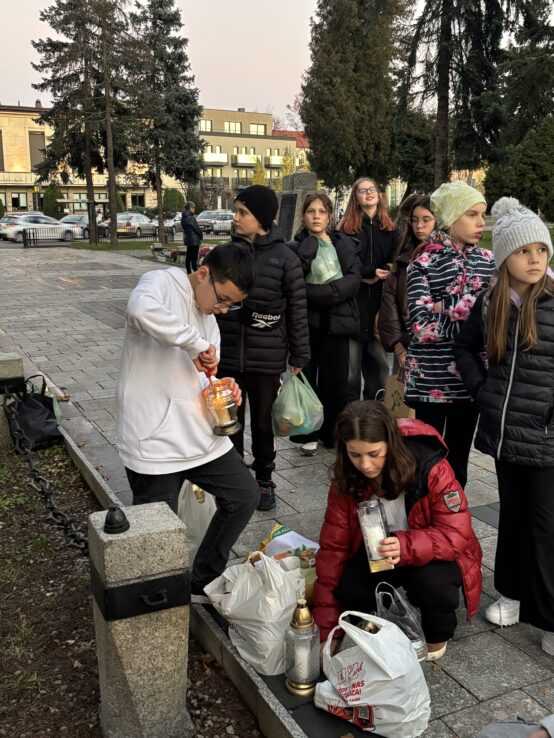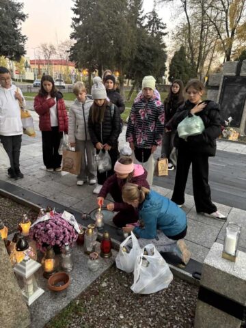 Miesiąc listopad poświęcony jest w szczególności pamięci o zmarłych. W ostatnich dniach w naszej szkole odbyła się akcja „Znicz”, zorganizowana przez szkolny wolontariat. Najpierw ogłoszono zbiórkę zniczy, do której chętnie włączyła się cała społeczność szkolna. Dzięki zaangażowaniu uczniów, rodziców i nauczycieli udało się zebrać dużą liczbę świeczek. Następnie wolontariusze udali się na Stary Cmentarz, gdzie zapalili zebrane znicze na opuszczonych i zapomnianych grobach. Przy każdym z nich zatrzymali się na chwilę refleksji i modlitwy, oddając hołd tym, o których pamięć już niemal zanikła. Akcja była nie tylko wyrazem szacunku dla zmarłych, ale również piękną lekcją wrażliwości i odpowiedzialności. Dziękujemy wszystkim, którzy włączyli się w to wyjątkowe przedsięwzięcie.