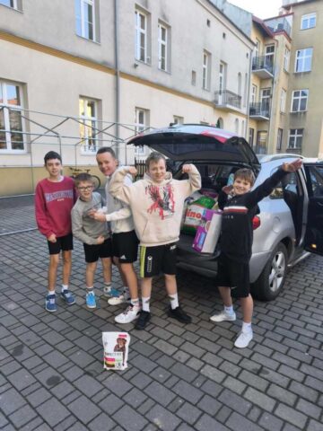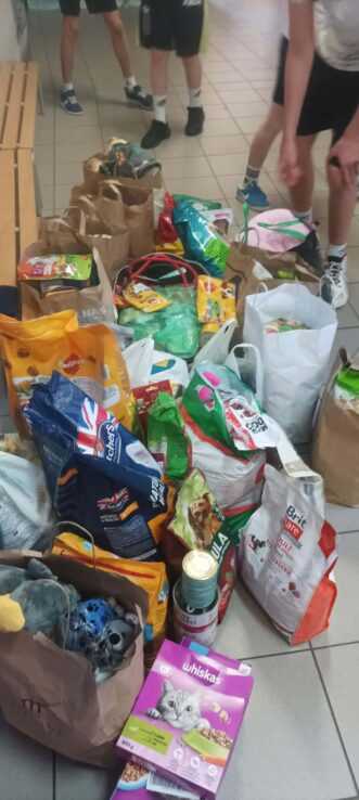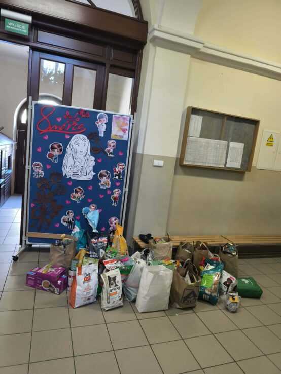 Dzięki zaangażowaniu uczniów, nauczycieli i rodziców zebraliśmy potrzebne rzeczy , które pomogą czworonogom przetrwać najbliższy czas