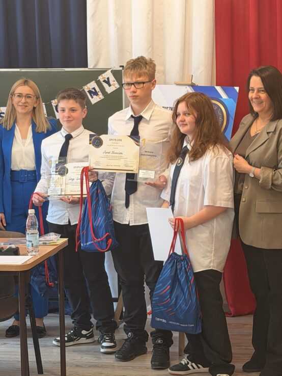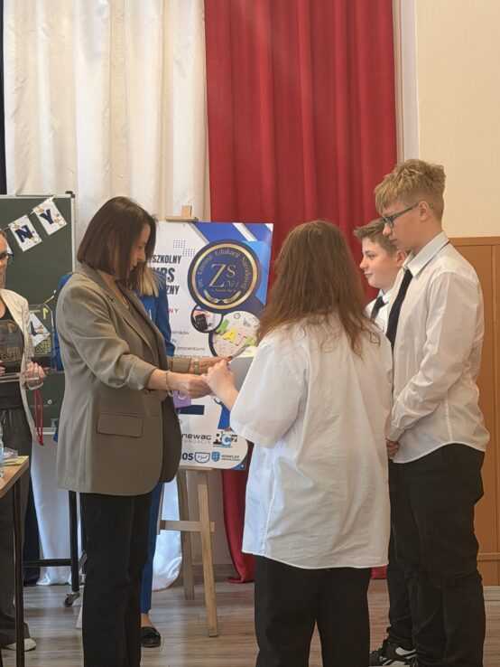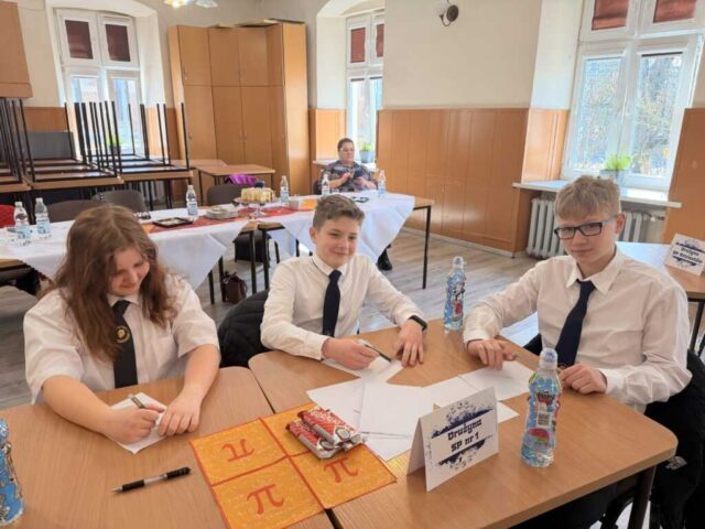 Dnia 23 marca 2026 r. trójka uczniów z klasy 8b — Dominika Aleksander, Marcel Krzemiński oraz Patryk Porczyk — reprezentowała naszą szkołę w konkursie „Trójbój matematyczny”, zorganizowanym przez Zespół Szkół nr 1 w Nowym Sączu.